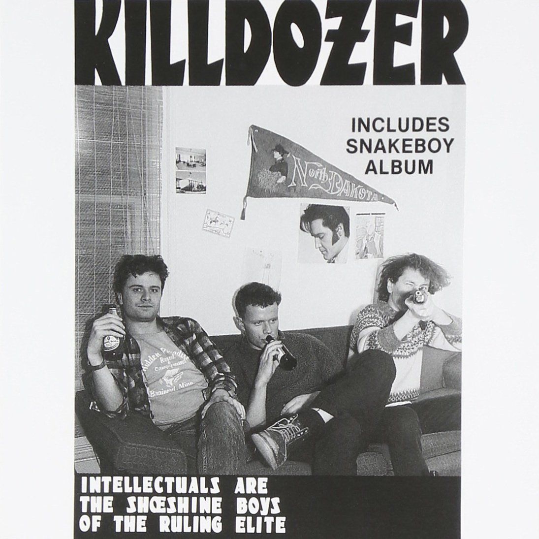 Some might argue that even a truncated history of noise rock must still start with either the repetitious disco-in-reverse hate beat of Chicago’s Big Black or the repetitious, grinding slurry of San Francisco's Flipper. But those people would be wrong. Steve Albini’s novel melding of asshole persona to asshole guitars is unquestionably important, but it’s also arguable that his influence on the guitar rock landscape, as musician and producer, under or above ground, is so vast that it gets a little boring to try to quantify. I mean, when asked who their favorite character in the Bible is, what kind of dork says “God”? Big Black’s 1982 Lungs EP certainly informed noise rock’s oft-revisited template of transcribing the imagined lesser works of Flanner O’Connor and setting those tales of small stakes cruelty to whatever notes and drum hits punk and metal had left on the cutting room floor. And Flipper’s “Sex Bomb/Brainwash” single, from the year before, basically set the noise rock template of howl-laughing into the void, over and over and over again (not to mention the proud noise rock tradition of treating hardcore like a dumb joke). Both bands, in imagining a world where Suicide could have guitars and not be Bruce Springstein, gave bands like Killdozer permission to tell their hoi polio stories in a voice supplied by Mel Blanc and backed by hardcore punk’s brutalism, if not pace. But, and I’ll keep pressing this point till the reader kills me, neither Big Black nor Flipper invented noise rock because they were a bunch of other things besides noise rock. (Same goes for the other logical forerunner, Lydia Lunch, who seems quite correctly content to have co-invented No Wave and singularly having invented the New York City In Decline of the imaginations of countless filigree’d art punks worldwide.) No, yeah, all those acts had options outside of noise rock. Not our Killdozer. All Killdozer was and could ever be was Killdozer. Thus, the Age of Noise Rock began.