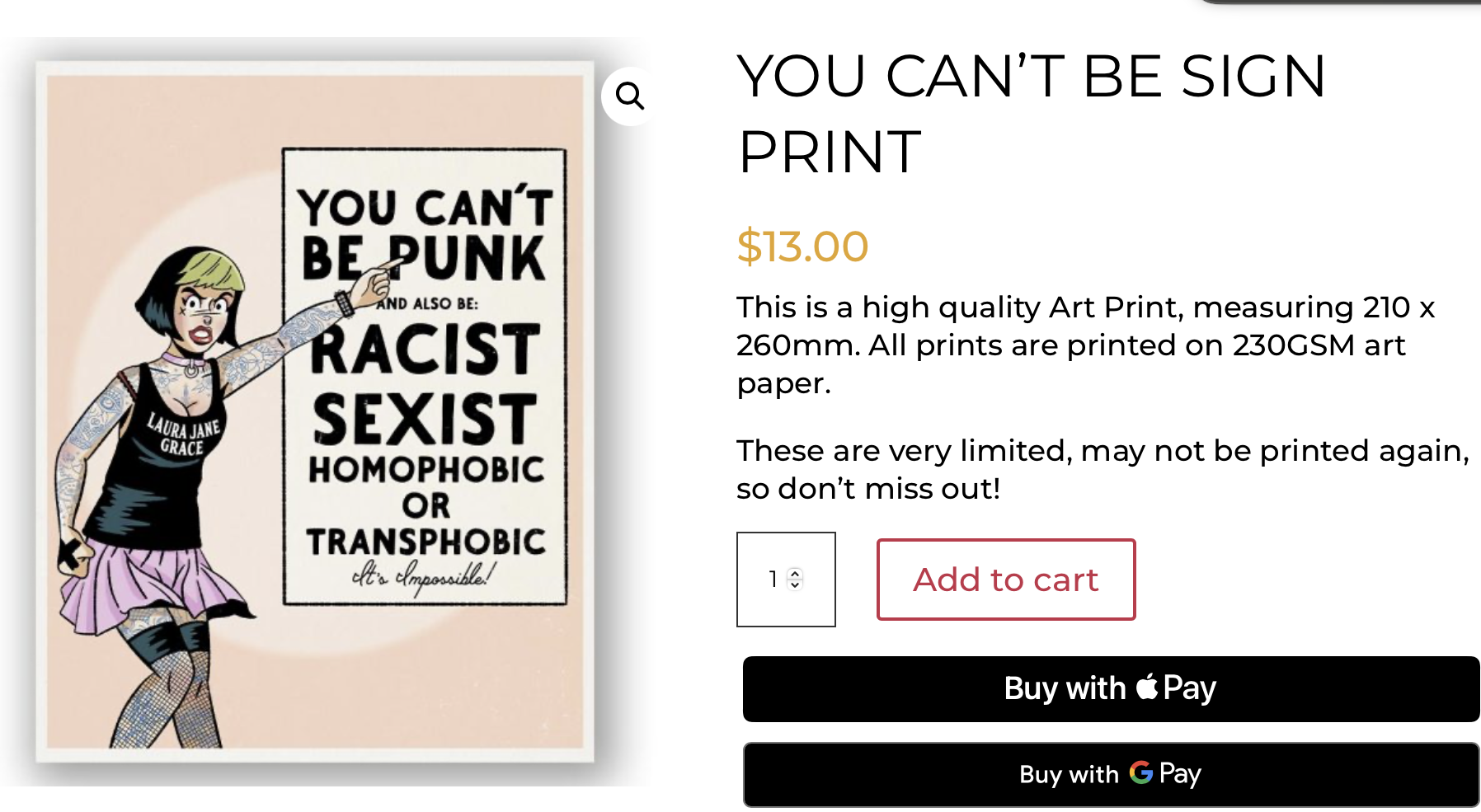 If you haven’t seen these cartoons—which depict two punk gals drawn in the house style of Archie Comics, pointing to a sign which says “You can’t be punk and also be: racist, sexist, homophobic, or transphobic. It’s impossible!”—then you either aren’t on Instagram or Reddit, or you're just far better at curating your feed than I am. If you haven’t at least seen the various bootlegged shirts or memed variations of the two black-flag-barred Riverdale-ians (not to be confused with the Riverdales, an impossible band), your algorithms are so divergent from mine that you might be a Nazi. Or just less interested in punk, cartoons, and/or leftism than I am. Same difference tbh.