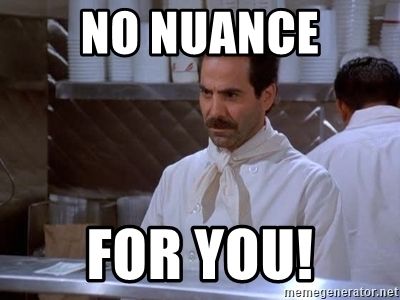 When I told Langston about my private “nuance is back, baby!” joke, he wrote, “We are in a place where so much repeated flagrancy and lack of decorum over the last few years has us wanting some form of normalcy, but that in itself is inherently rickety and an imagined genteel fantasy. Where outrage, shock value, and insensitivity might have been overwrought before, one could say now we need a few (tasteful) jolts to combat a campaign-- a placation industrial complex if you will -- that wants to convince us everything can be alright the way it was.” Which I thought was great.